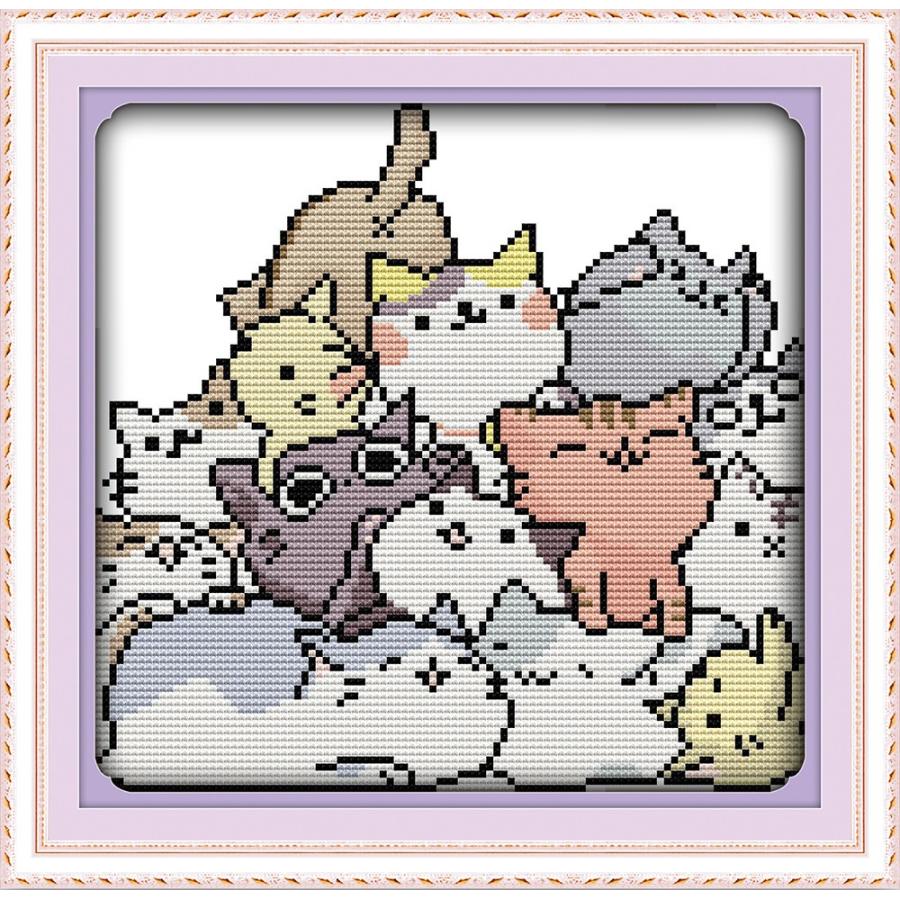 ししゅう糸 クロスステッチ刺繍キット 布地に図柄印刷 可愛い猫群 Oe Qyzf vf Gambaru ショップ 通販 Yahoo ショッピング